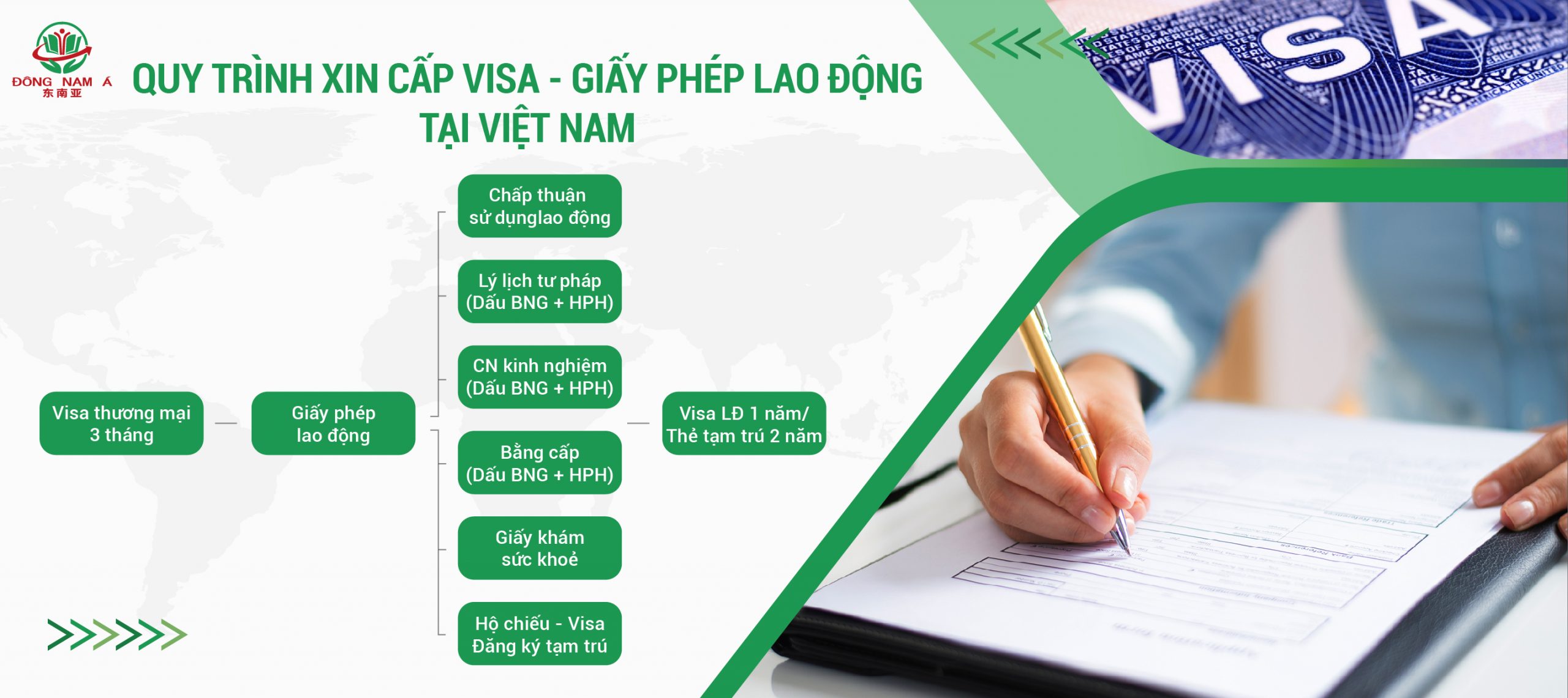 Công ty Đông Nam Á chuyên tư vấn thủ tục nhập cảnh cho người nước ngoài tại Việt Nam với hơn 10 năm kinh nghiệm trong ngành. Chúng tôi hỗ trợ tư vấn quy trình và thủ tục xin công văn nhập cảnh, thẻ tạm trú và Visa Việt Nam với mức phí tiết kiệm.