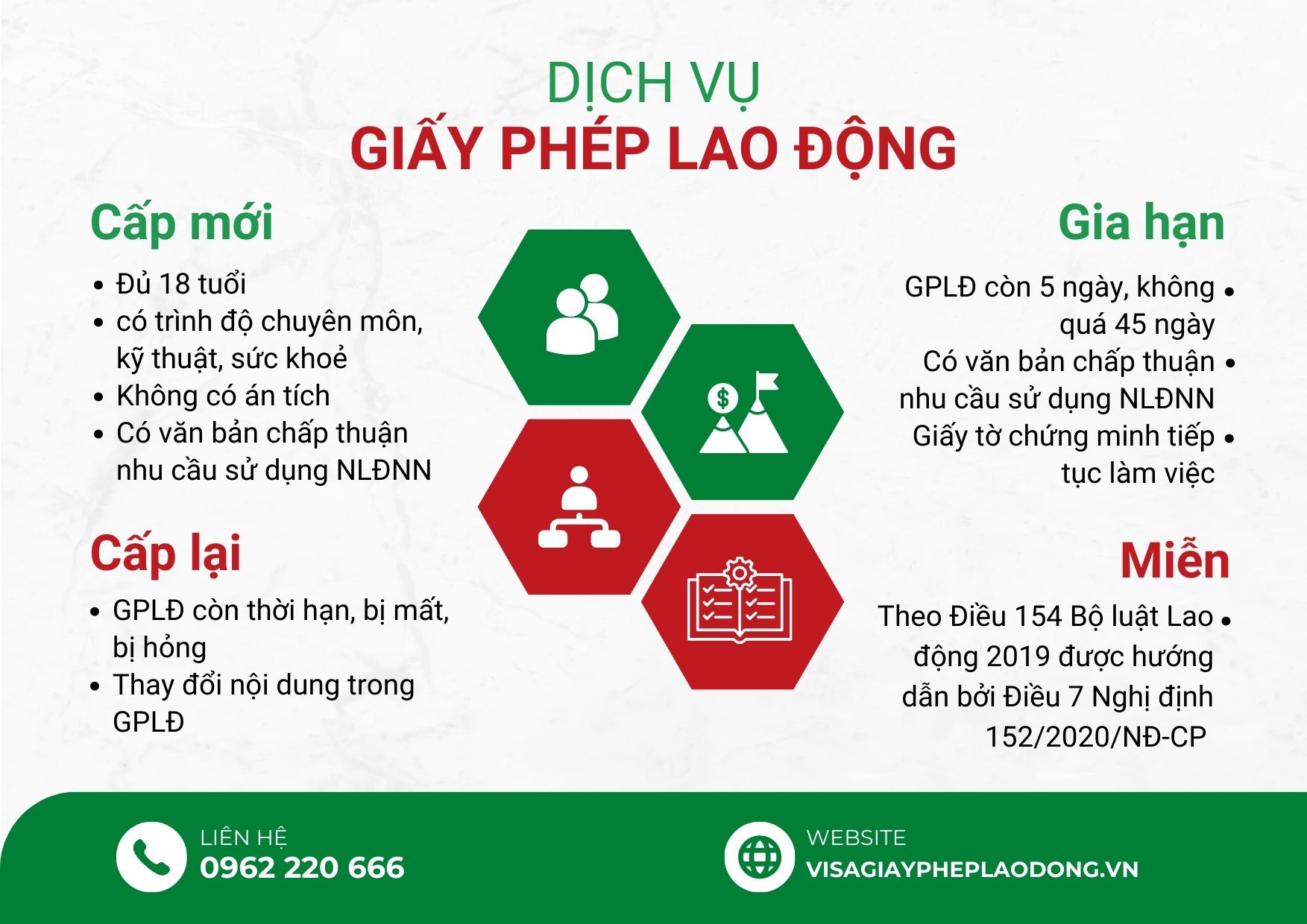 Việc xin giấy phép lao động cho người nước ngoài làm việc tại Việt Nam là một quá trình cần thiết và phải tuân thủ nghiêm ngặt các quy định pháp luật. Hiểu rõ và thực hiện đúng quy trình này không chỉ giúp bạn làm việc hợp pháp mà còn đảm bảo quyền lợi lao động của mình. Nếu Quý công ty đang cần một đơn vị uy tín, nhanh chóng, an toàn về pháp lý để hỗ trợ những vấn đề trên, vui lòng liên hệ với chúng tôi theo Hotline: 0962 220 666